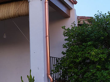 Cobre natural, recomendado para construcciones rústicas o tradicionales. El paso de tiempo le proporcionará un característico aspecto envejecido.